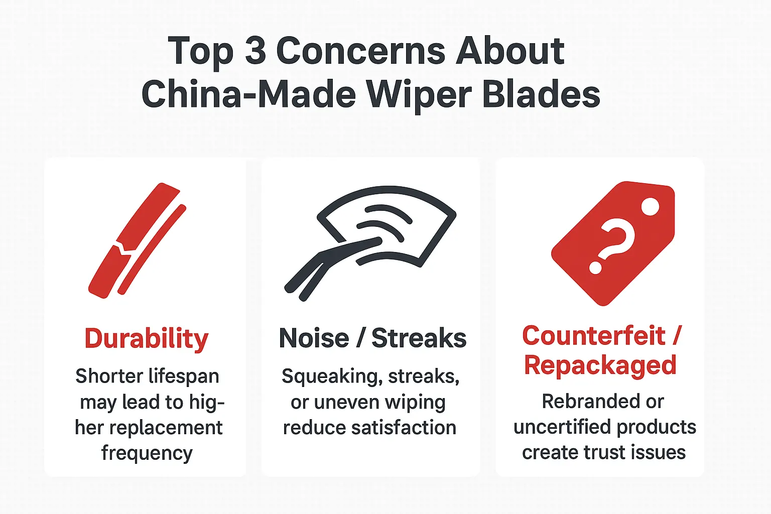 Se sei il proprietario o un distributore di un’officina di riparazione auto, potresti comunque esitare ad acquistare spazzole tergicristallo dalla Cina. Forse hai sentito storie di striature, cigolii o parti che si usurano troppo rapidamente. O forse qualcuno ha menzionato un lotto che non si adattava correttamente. Queste esperienze, sebbene reali in alcuni casi, spesso provengono da fornitori obsoleti o da rebranding a basso costo, non da produttori moderni e certificati.