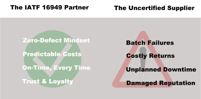 Questa non è solo sfortuna. È il risultato prevedibile di un fornitore senza un approccio sistematico alla qualità:IATF 16949.