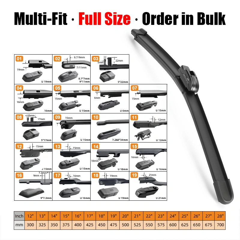 Se stai cercando un fornitore affidabile di tergicristalli, non esitare a farlocontattaci o e-mailwiperblade8@xmyujin.com per ottenere il catalogo più recente dei prodotti per tergicristalli e prezzi all'ingrosso competitivi.