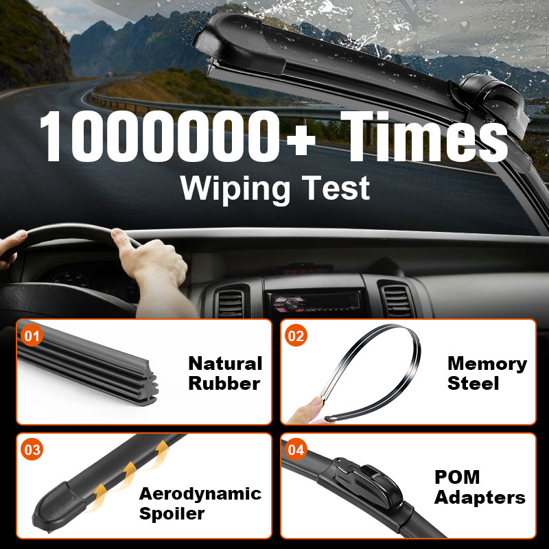 Il segreto è la nostra gomma con rivestimento in teflon ad alte prestazioni e un telaio in acciaio di precisione, i nostri tergicristalli eliminano le chiacchiere e le strisce d'acqua. Fornire un'esperienza di pulizia liscia e tranquilla aiuta a ridurre i reclami, aumentare la fedeltà dei clienti e guidare gli acquisti ripetuti.
